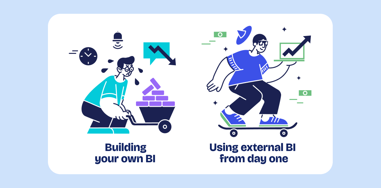 It should also be noted that internal BI rarely contributes to a company’s valuation the way founders expect. In an acquisition, the acquirer will use its own BI system after the purchase, and the valuation of the acquired company's internal solution, in which the team has invested a significant amount of time and money, will be excluded from the deal.